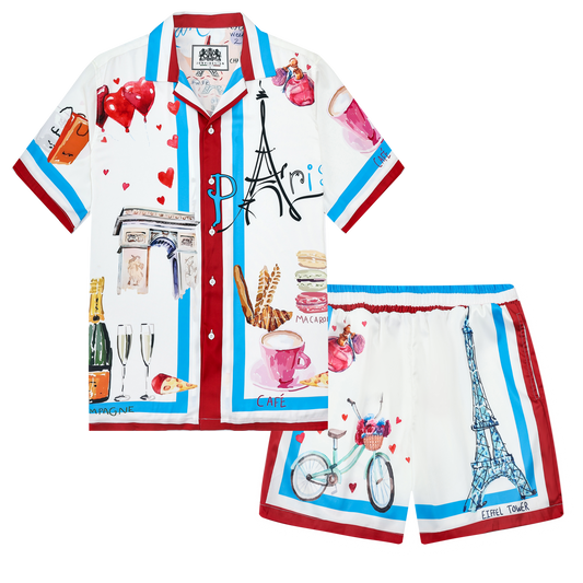 Paris Eiffel Tower Leisure Elements Camp Collar Short Sleeve Shirt