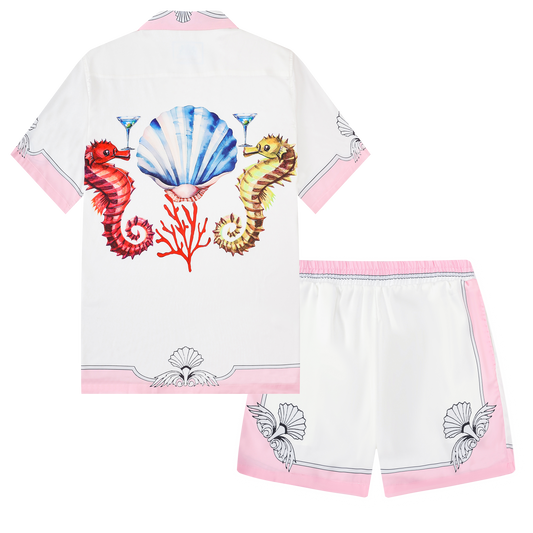 Marine Seahorse Pattern Short Sleeve Camp Collar Shirt