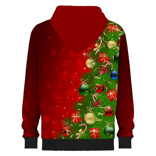 Red Gorgeous Christmas Tree Print Hooded Sweatshirt