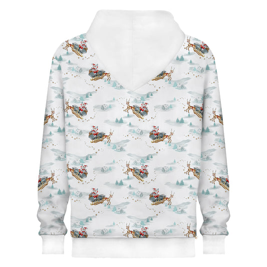 Santa Claus Driving A Reindeer Sleigh In The Snow Print Hooded Sweatshirt