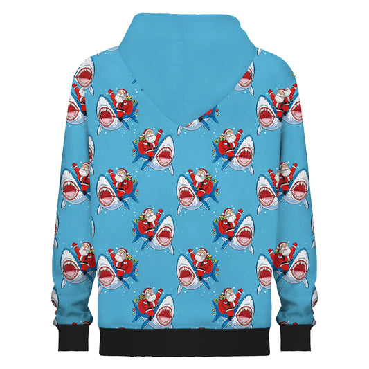 Santa Claus Riding A Shark Print Hooded Sweatshirt