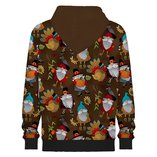 Santa Claus And Turkey Print Hooded Sweatshirt