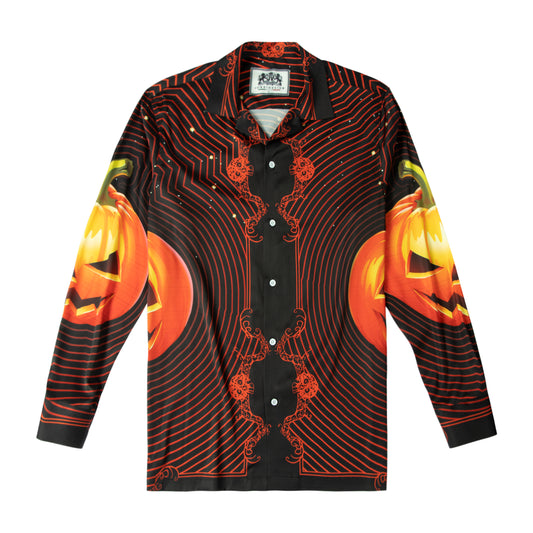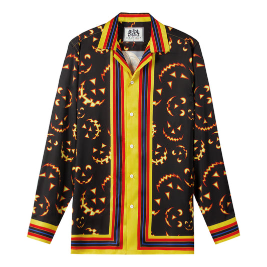 Halloween Pumpkin Long Sleeve Camp Collar Shirt