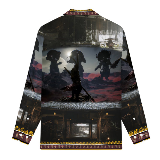 Black Myth: Wukong Background of the Four Heavenly Kings Print Long Sleeve Camp Collar Shirt