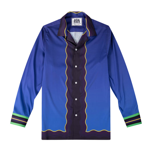 Blue Ferry Pattern Camp Collar Casual Long Sleeve Camp Collar Shirt for Men