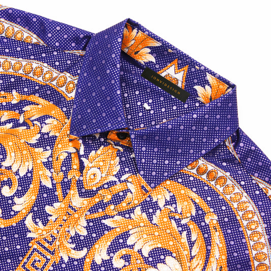 Baroque Globe Pattern Print Camp Collar Long Sleeve Shirt
