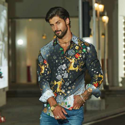 Angel Sun Pattern Camp Collar Long Sleeve Shirt