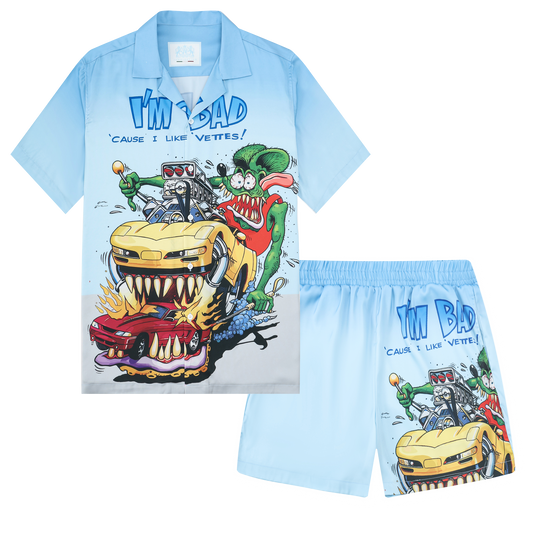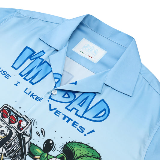 Modified Car Sky Blue Camping Collar Short-Sleeved Shirt