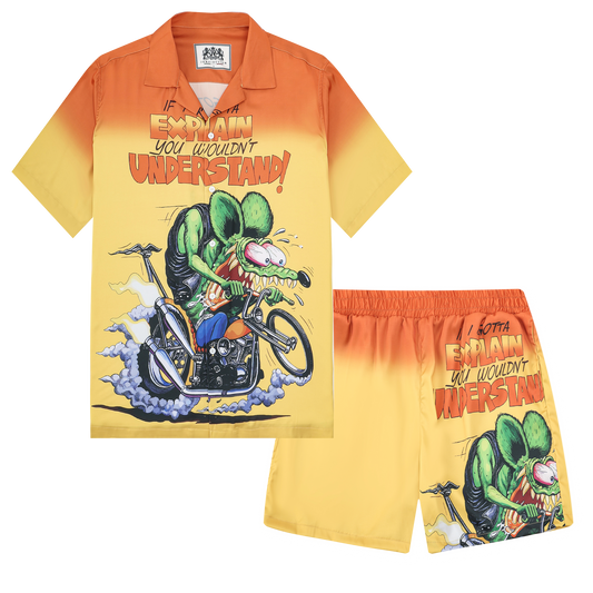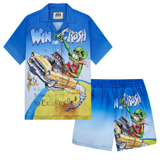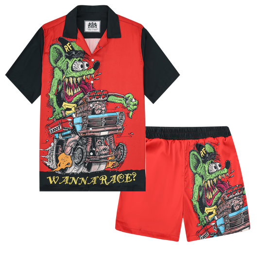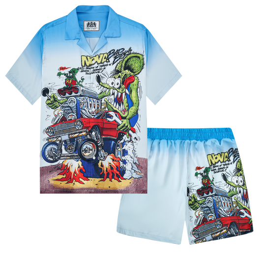Mouse Modified Car Speed Print Camp Collar Short Sleeve Shirt