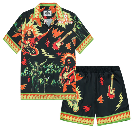 Bob Marley Singer Camp Collar Short Sleeve Shirt