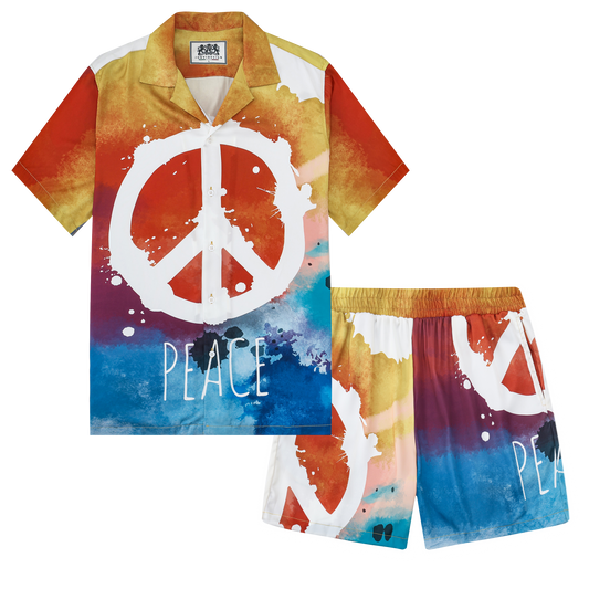 Peace Print Camp Collar Short Sleeve Shirt