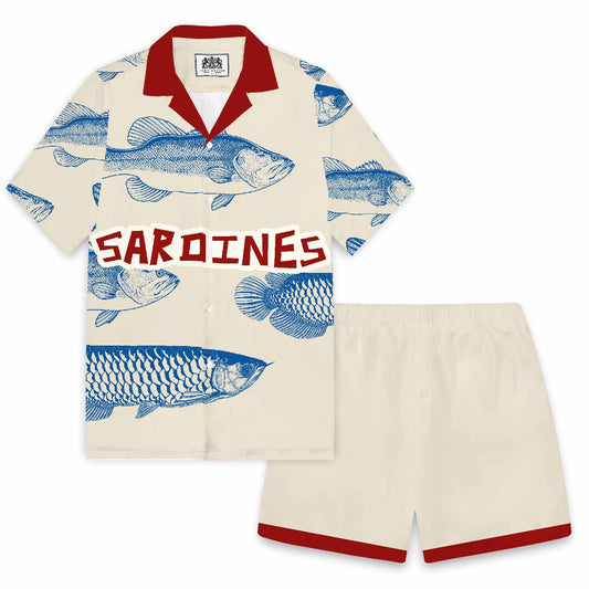 Blue Striped Vintage Sardines Short Sleeve Shirt