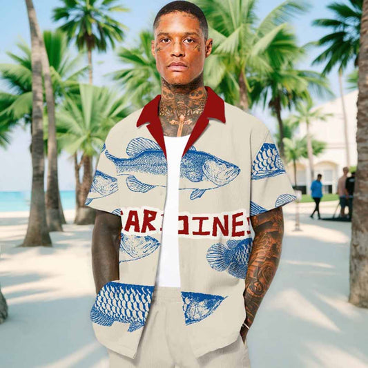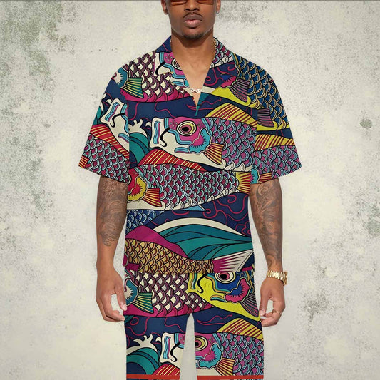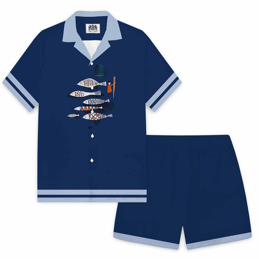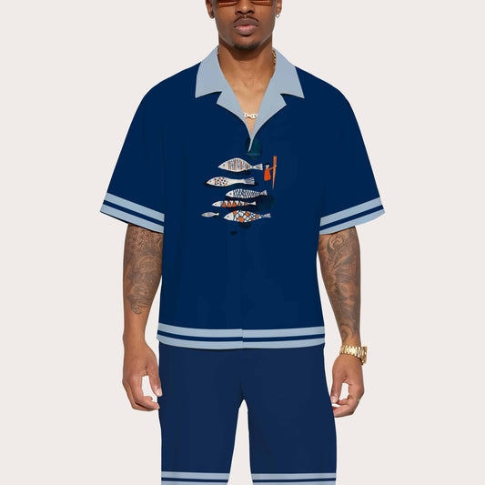 Summer Retro Fish Series Camp Collar Short-Sleeved Shirt