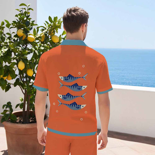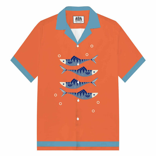 Fish Blowing Bubbles Orange Camp Collar Short Sleeve Shirt