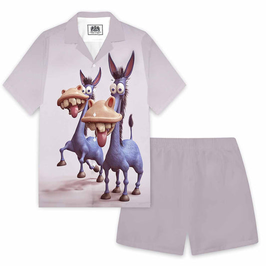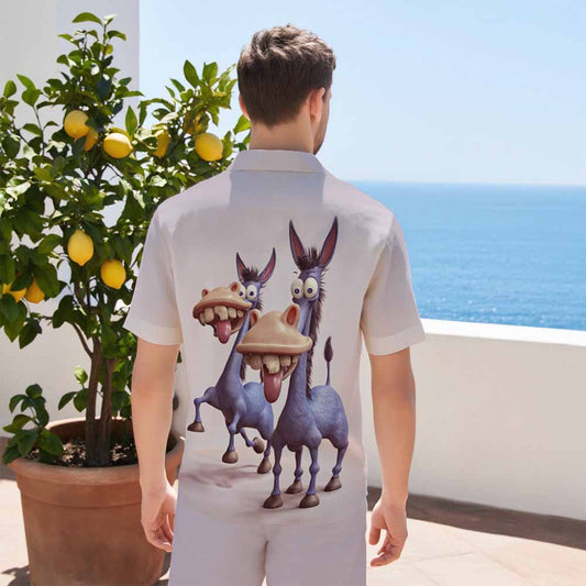 Funny Donkey Print Camp Collar Short Sleeve Shirt