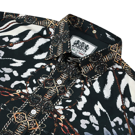 Golden Baroque Short Sleeve Shirt with Chain Accents