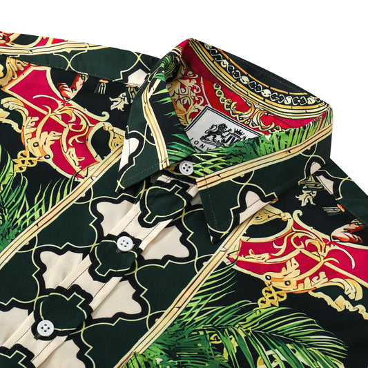 Tropical Leopard Printed Silk Fiber Short Sleeve Shirt