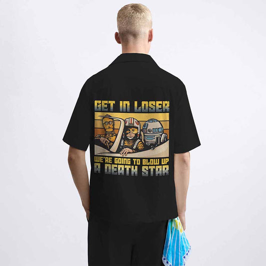 Vintage Get in Loser Print Camp Collar Short-Sleeved Shirt