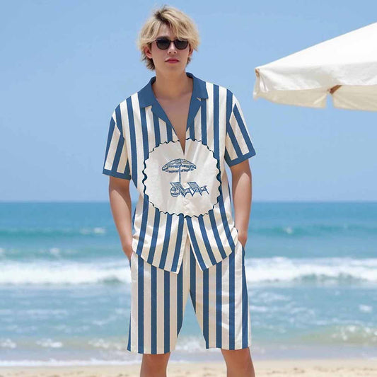 Vertical Striped Beach Style Print Camp Collar Short Sleeve Shirt