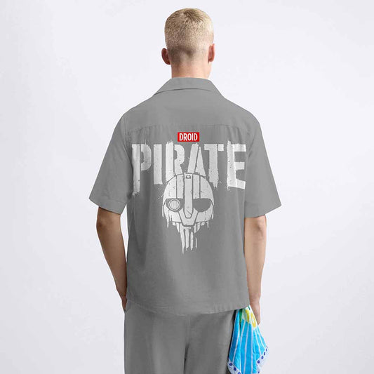 PIRATE Print Grey Camp Collar Short-Sleeved Shirt