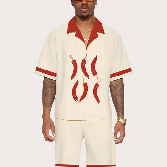 Red Chili Pepper Casual Camp Collar Short-Sleeved Shirt