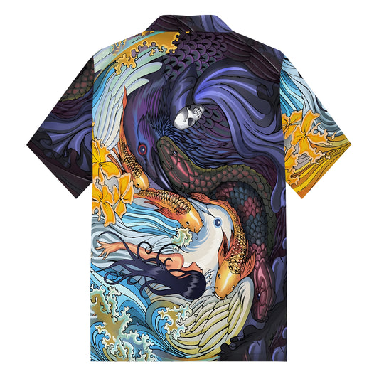 Eagle Koi Playful Print Camp Collar Short Sleeve Shirt