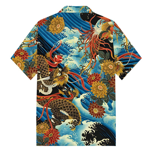 Golden Dragon The Great Wave off Kanagawa Print Camp Collar Short Sleeve Shirt