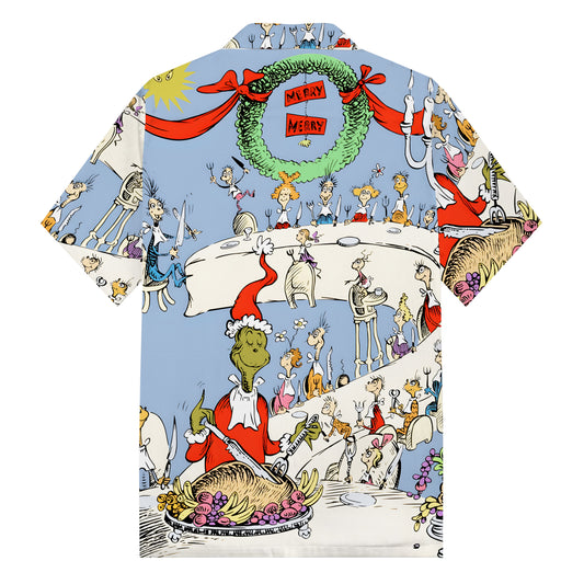 Green Monster Christmas Dress Up Gift Giving Camp Collar Short Sleeve Shirt