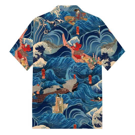 The Great Wave Off Kanagawa Cruise Ship Print Camp Collar Short Sleeve Shirt