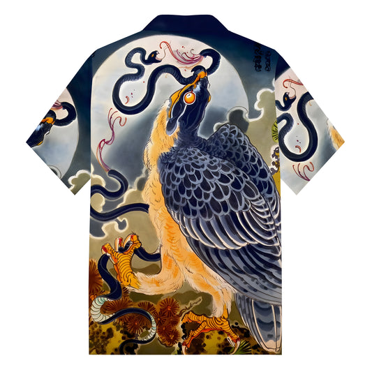 Eagle Eagle Snake Snake Eagle War Print Camp Collar Short Sleeve Shirt