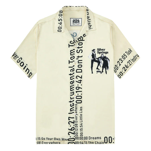 Fleetwood Mac LP Pattern Camp Collar Casual Shirt for Men