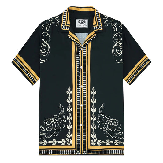 Dragon Tiger Pattern Button Camp Collar Short Sleeve Shirt