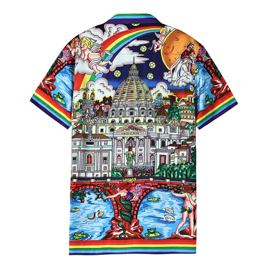 Castle Myth Pattern Short Sleeve Camp Collar Shirt