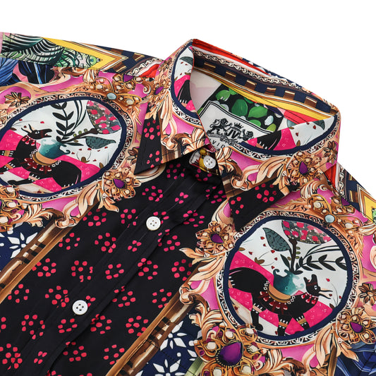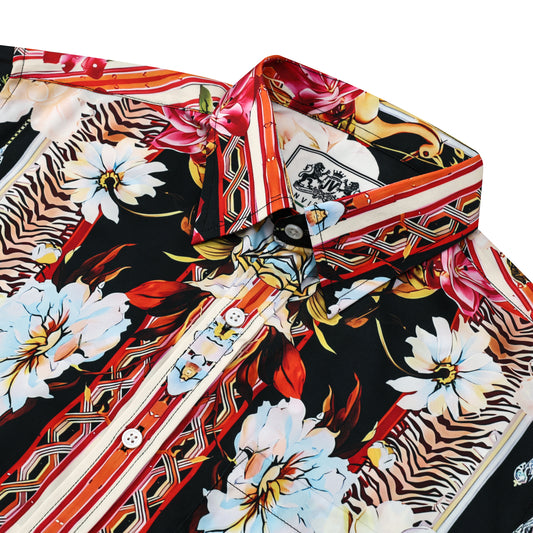 Luxury Animal Flower Print Silk Fiber Short Sleeve Shirt