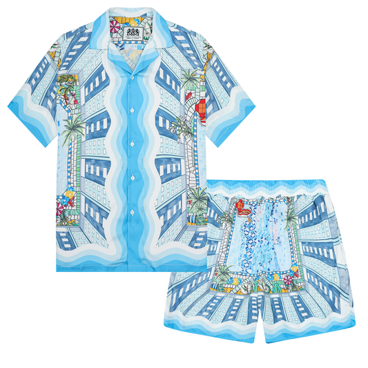 Resort Pool Print Elastic Waistband Summer Casual Shorts