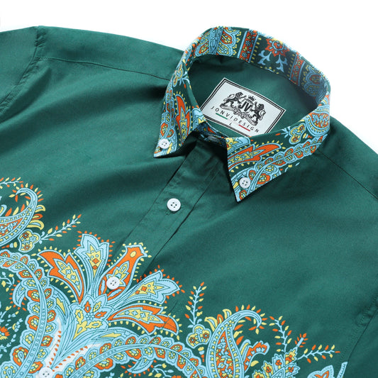 Green Paisley Print Button Down Long Sleeve Casual Shirt