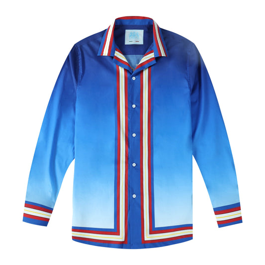 Floral Palace Pattern Long Sleeve Button Down Shirt in Blue