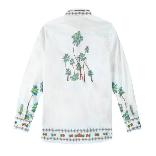 Palm Tree Pattern Long Sleeve Vacation Shirt