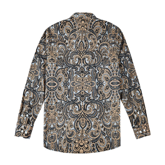 Golden Baroque Pattern Long Sleeve Button Down Casual Shirt