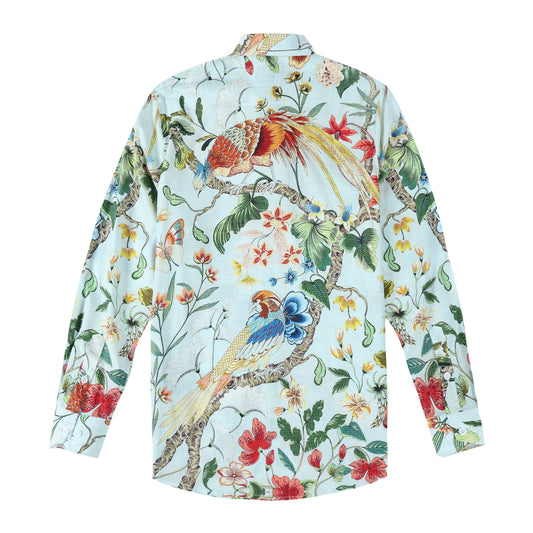 Tropical Paisley Print Button Down Long Sleeve Shirt