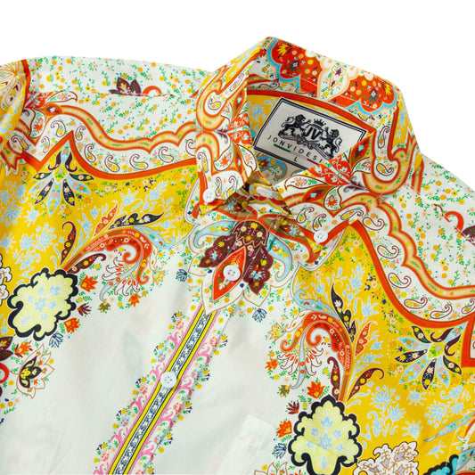 Paisley Pattern Long Sleeve Button Down Shirt in Yellow