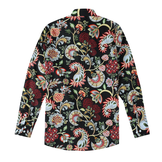 Vintage Floral Pattern Long Sleeve Button Down Shirt