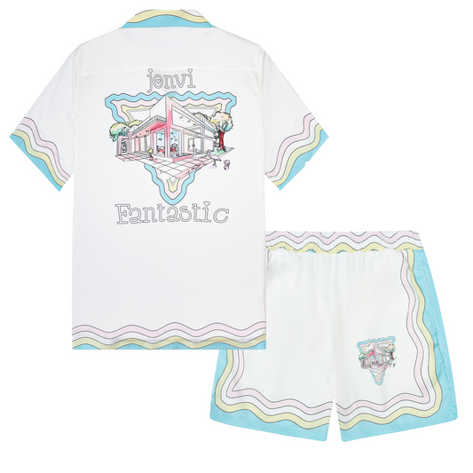 Angel Sun Pattern Gradient Color Waistband Shorts