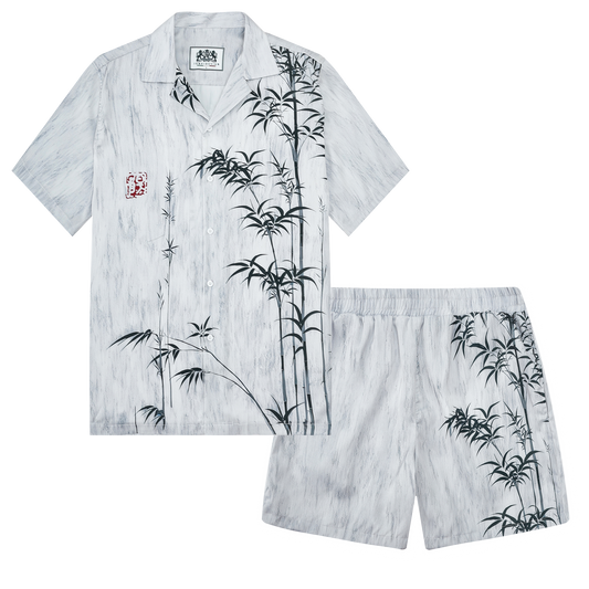 Bamboo Print Design Elastic Waistband Summer Casual Shorts