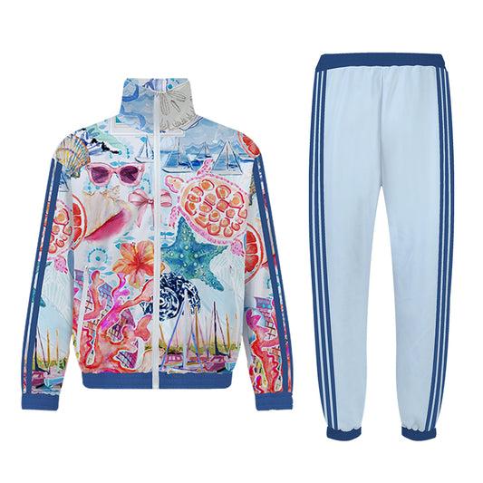 Hawaiian Beach Style Print Elastic Waist Sports Sweatshirt Pants