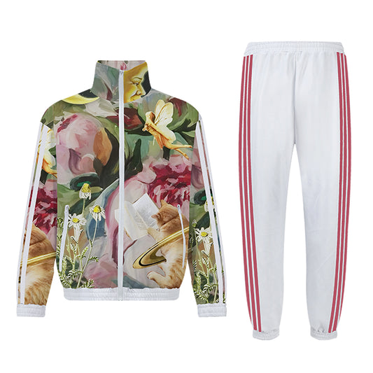 Butterfly Floral Print Casual Sports Suit Elastic Waist Sports Sweatshirt Pants