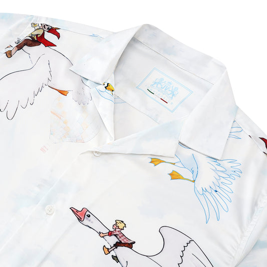 Red-crowned Crane Print Short Sleeve Camp Collar Shirt