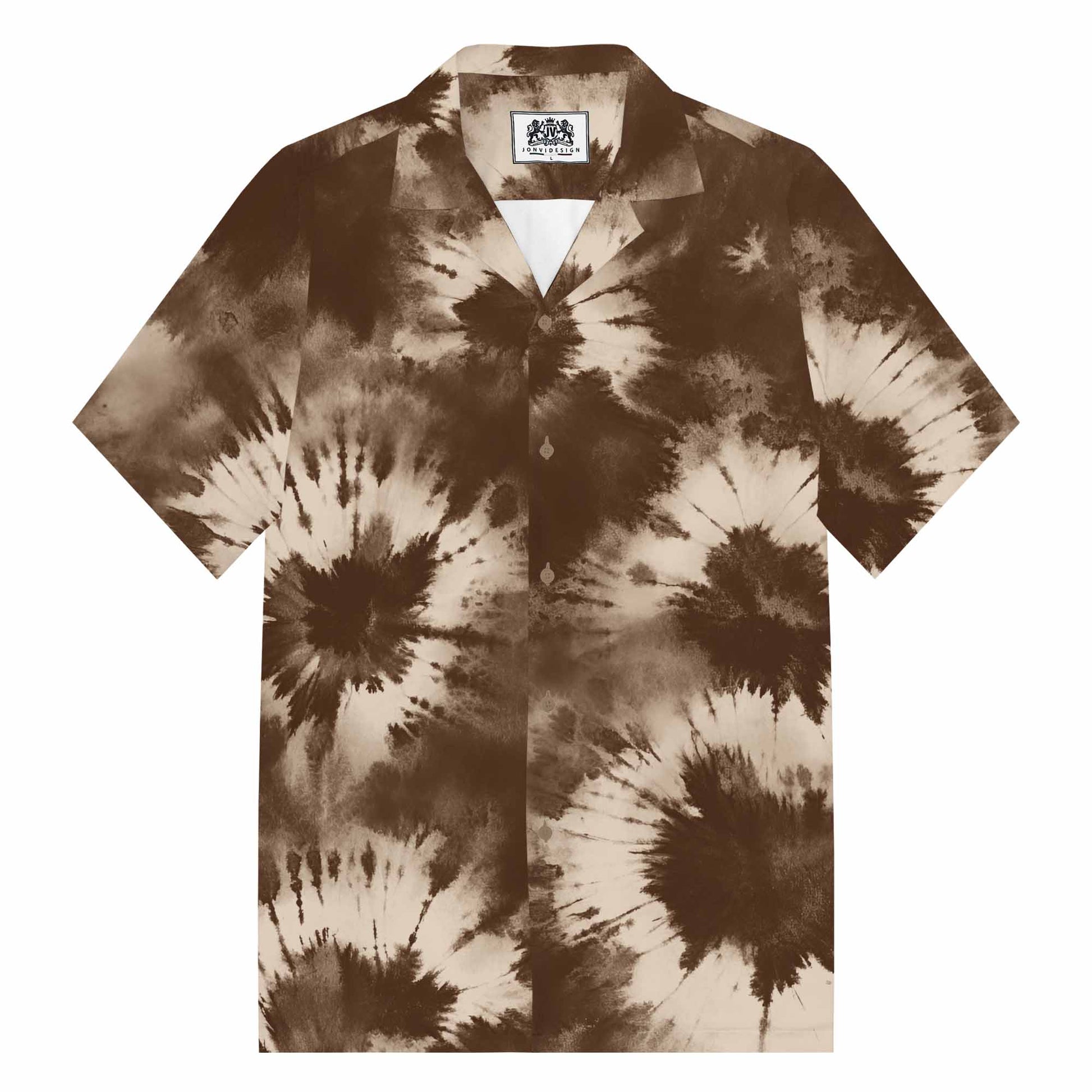 Brown Tie-Dye Camp Collar Short Sleeve Shirt