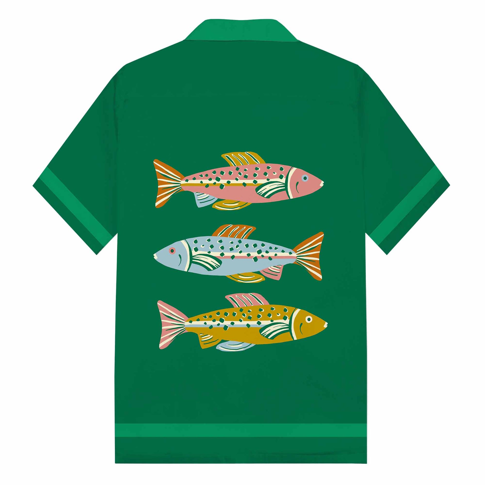 Colorful Fish Print Camp Collar Short Sleeve Shirt