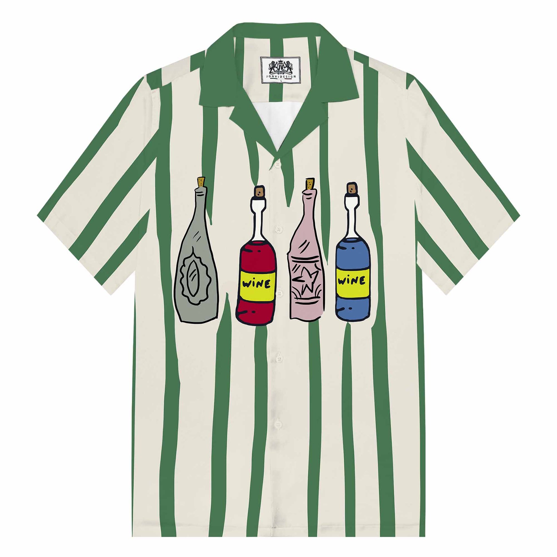 Funny Red Wine Bottle Print Camp Collar Short-Sleeved Shirt